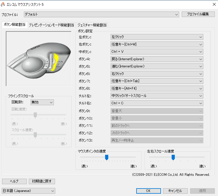 参考までに私のボタン割当の基本設定です。